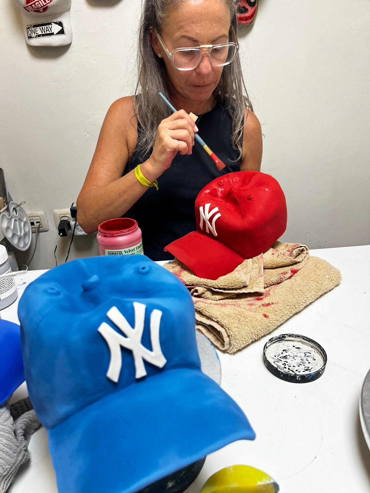 NY Yankees Ceramic Cap Sculpture (Red) - Figurative Sculpture