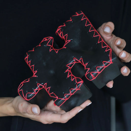 Mat Black Ceramic Puzzle with Fiery Red Embroidery