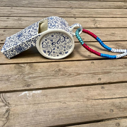 Wake Up Call Ceramic Whistle with Handcrafted Embroidered Cord